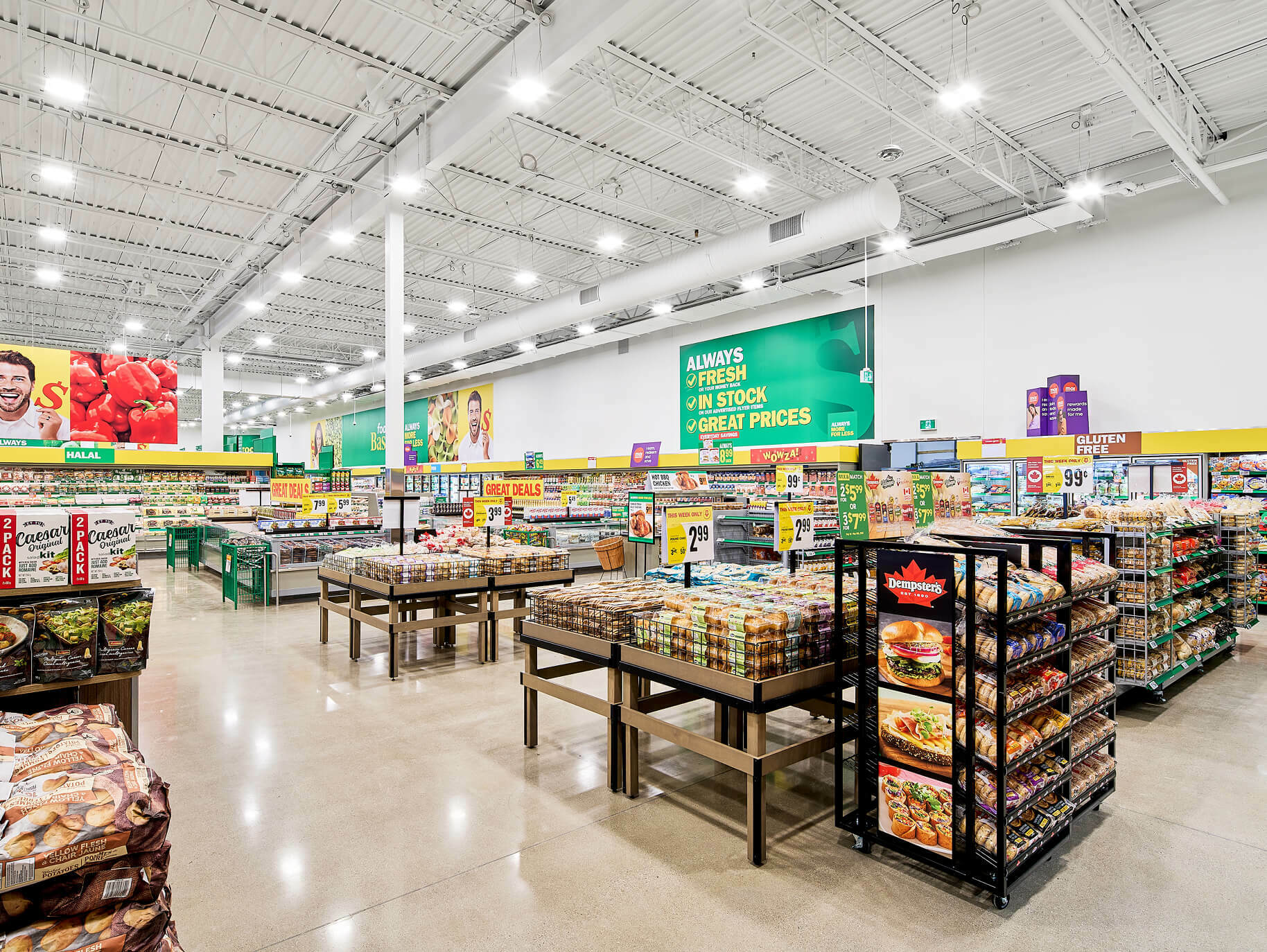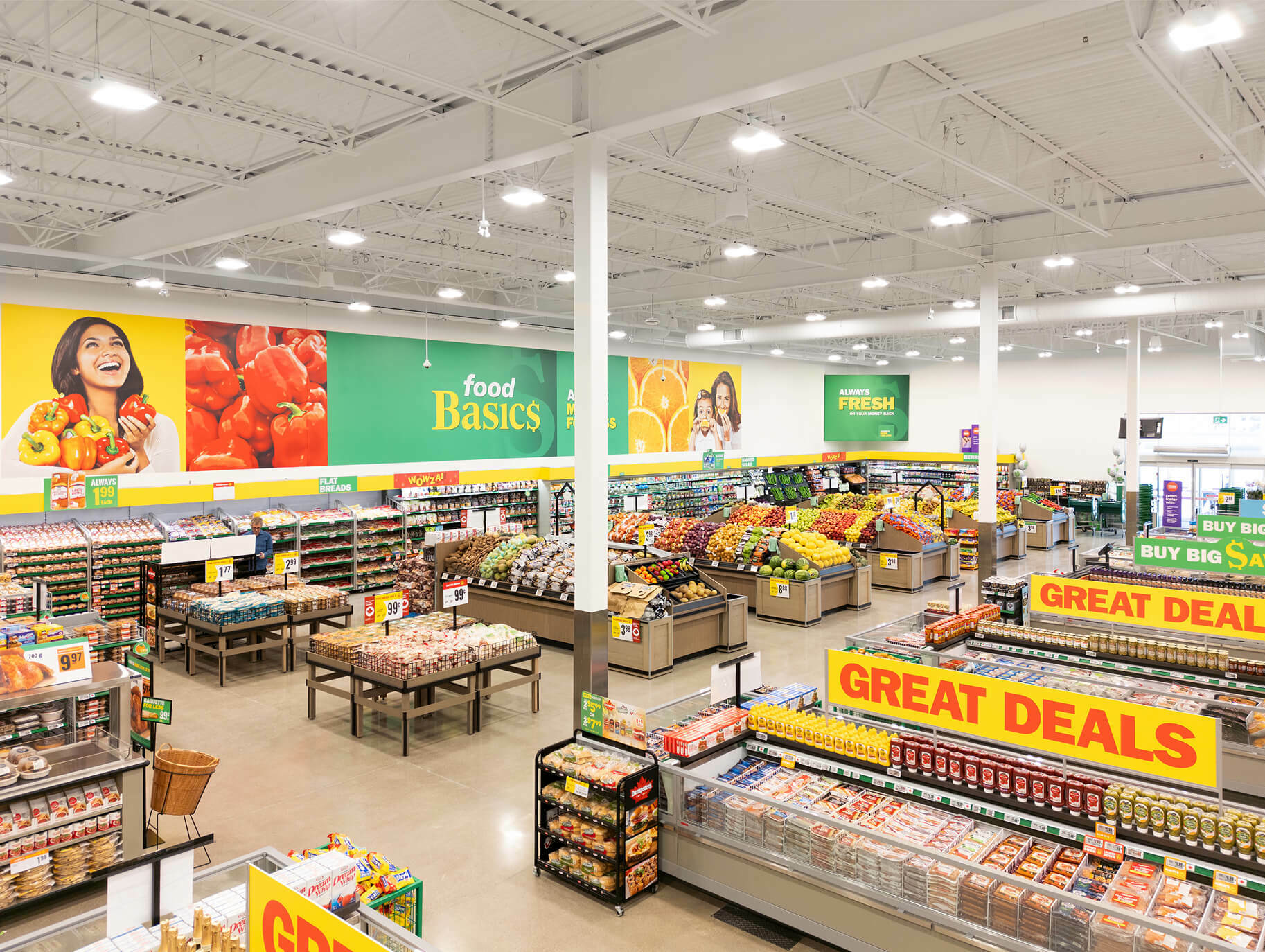 Metro locations were constructed as full-service grocery environments, incorporating fresh food zones, customer amenities, and efficient back-of-house systems. Food Basics projects focused on value-engineered delivery with speed-to-market strategies and durable infrastructure that align with brand positioning.